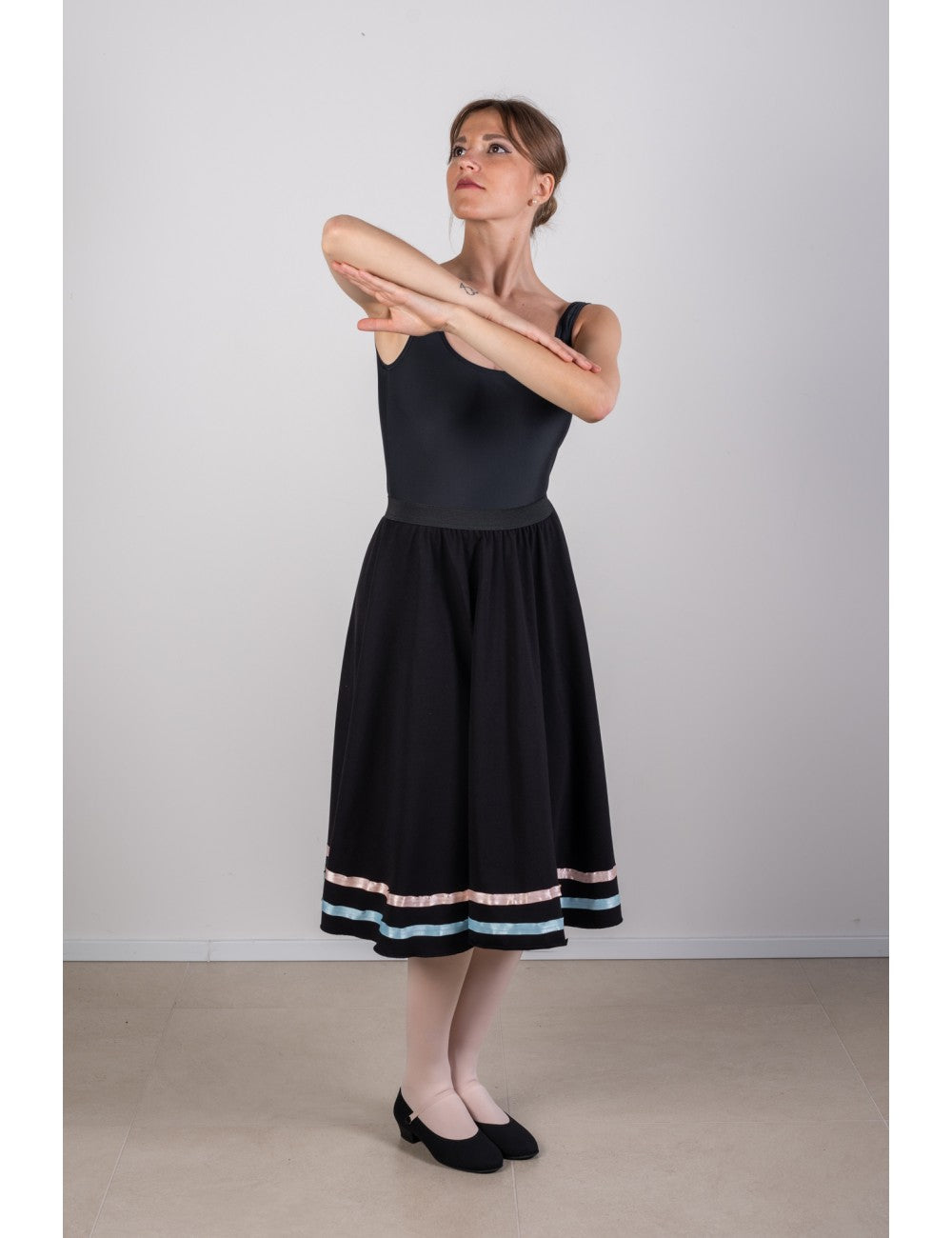 Scopri la Gonna Carattere, il capo ideale per lo studio delle danze di carattere. Questa gonna ampia è progettata per offrire libertà di movimento e comfort, permettendoti di esprimere al meglio la tua arte.